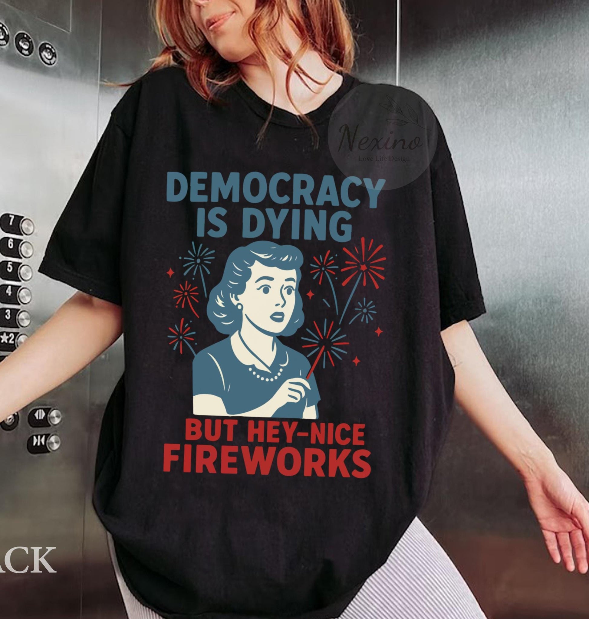 Democracy Is Dying Fourth of July Protest Shirt, Political Retro T-Shirt, But Hey Nice Fireworks Tee, Funny USA Graphic Tee, Sarcastic tee