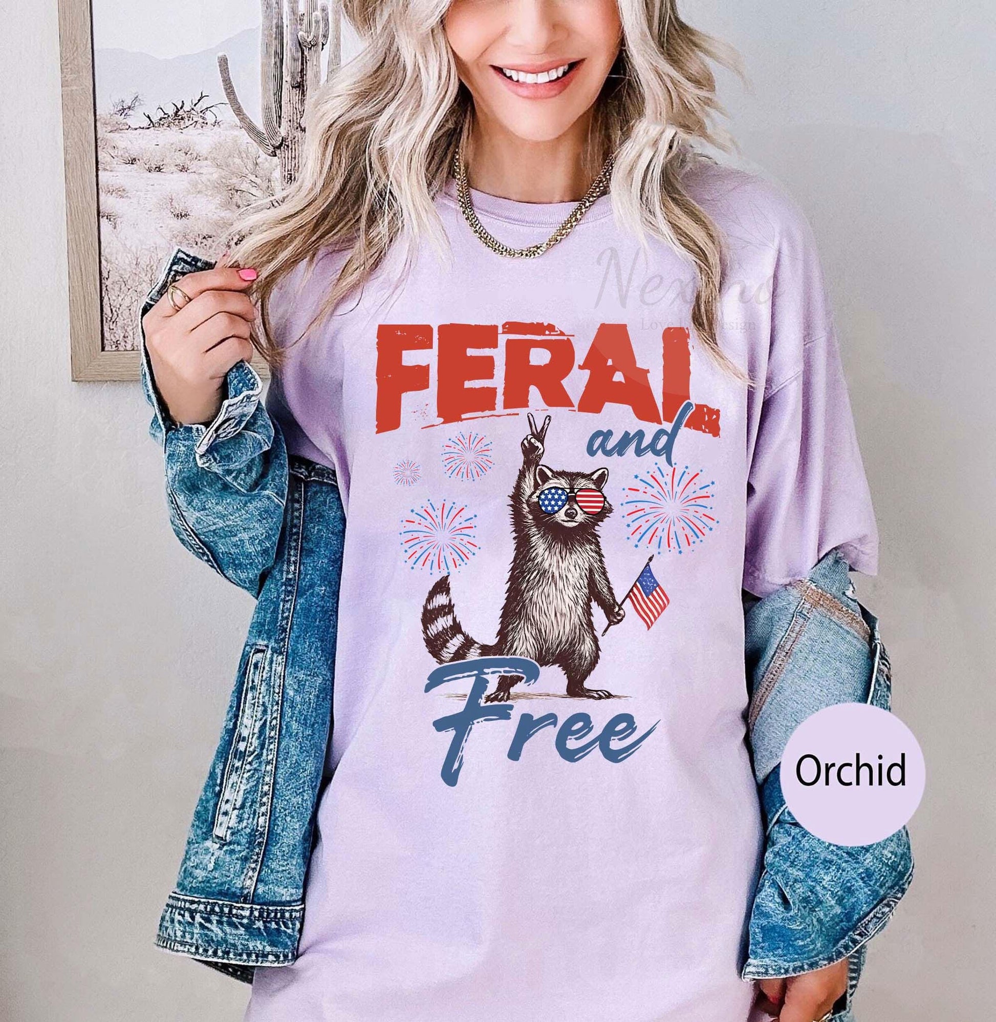 Funny 4th of July Shirt, Feral & Free Raccoon Comfort Colors T-Shirt, American Feral Girl Summer Meme Shirt, Patriotic Independence Day Gift