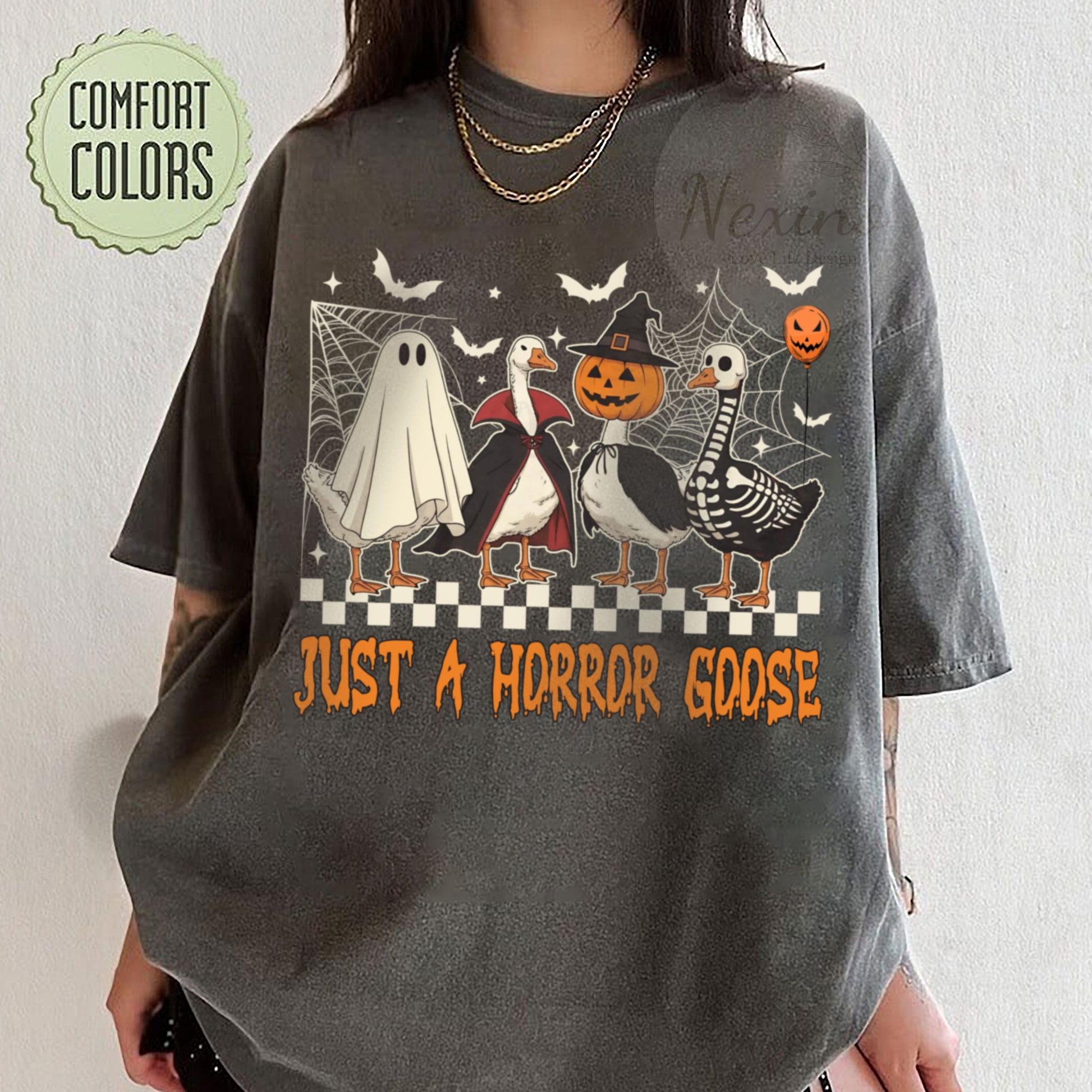 Just a Horror Goose Comfort Shirt, Funny Halloween Goose Shirt, Goose in Halloween Costumes Shirt, Cute Horror Shirt, Spooky Goose